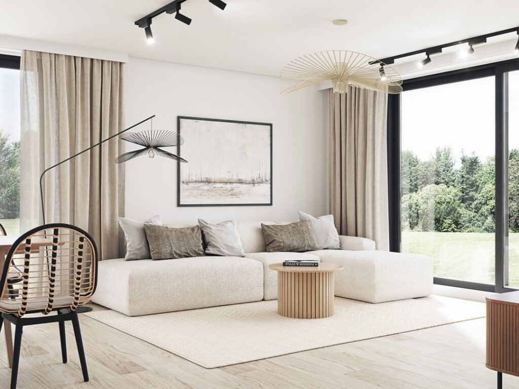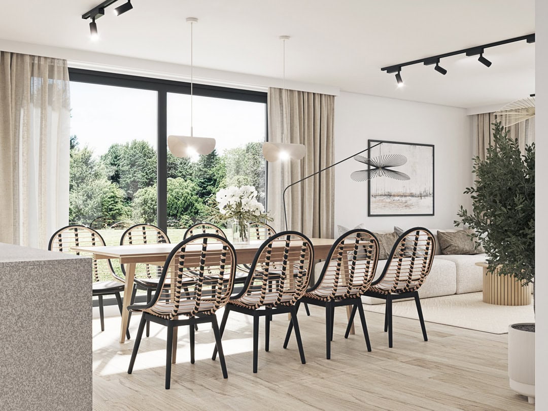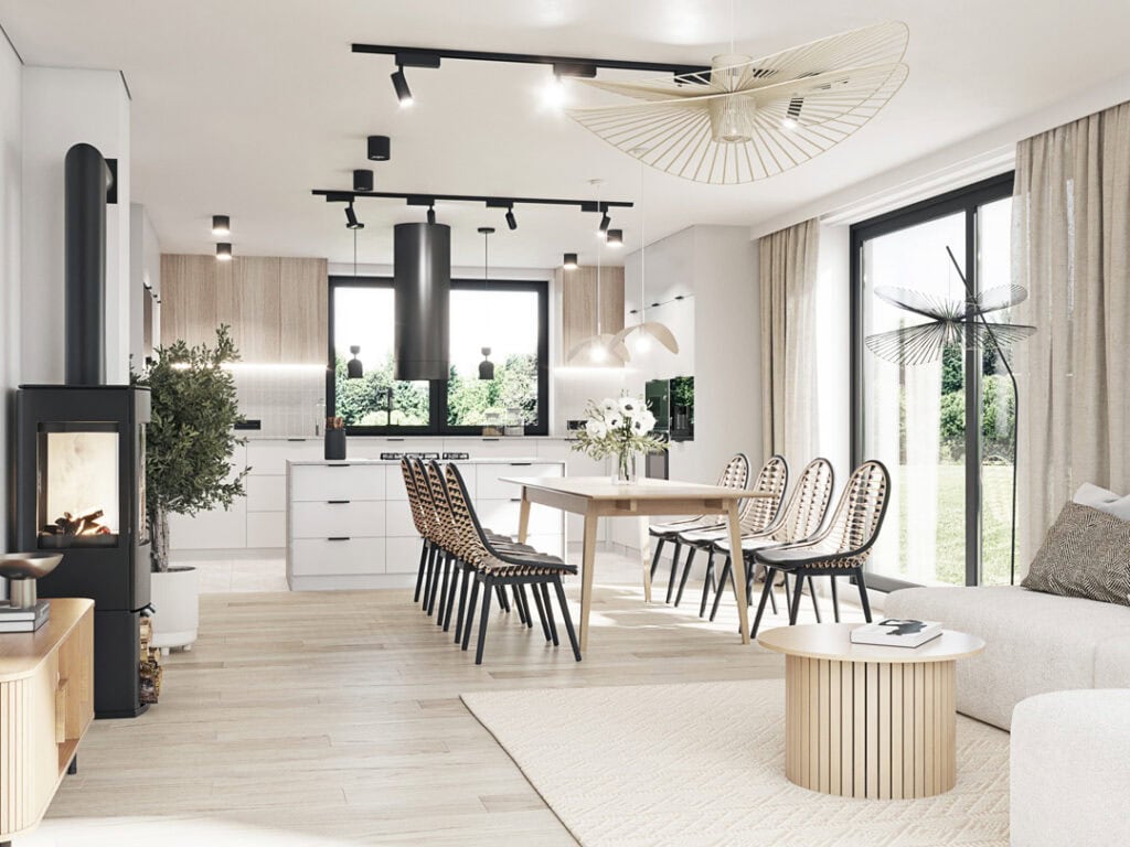 Strefa dzienna w domu jednorodzinnym, 68 m², Tuchorza, 2023